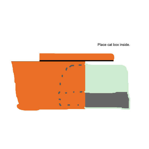 Es importante tener en cuenta que la caja no debe ir todo el camino. Debe haber un espacio entre la caja y la pared del recipiente. En esta zona que atrapa esa dispersión. Si usted hizo el interior paso, entonces cada vez que usted quite la caja para limpiar, usted puede empujarlo hacia atrás hasta que llega el paso, mientras el paso vuelve un buen dos tercios de la longitud de una gato.