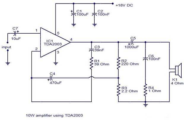 Aquí es el tda 2003 diagrama esquemático hace dos de este circuito para canal estéreo o dual.