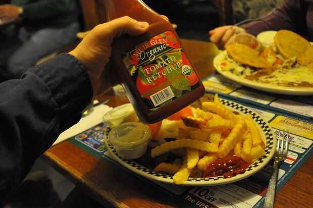 Casualmente como papas fritas. Bien caliente unos, con un poco de sal y salsa de tomate. Pero casi todos kétchup (o catsup para gente que le gusta ese tipo de cosas) utiliza el jarabe de maíz como endulzante, incluyendo uno en el restaurante. Conoces la marca que estoy hablando...