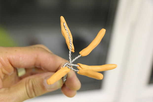 Splay los dedos de la armadura hacia fuera para que no consiguen de la manera como trabaja cada dedo. Hacer salchichas de Sugru y los ponen a lo largo de cada dedo. Apriete alrededor y cerrar la brecha en el lado opuesto. Suavizar las líneas de Unión, tanto como sea posible y tratar de asegurar que el Sugru cubre cada uno de los dedos uniformemente.