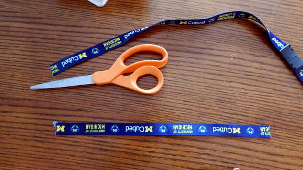 Elegir el bolsillo de en que la cuerda va. En este caso elegí el bolsillo porque es de fácil acceso y parece el mejor lugar para poner las llaves de mi. Abra el bolsillo y saque el forro. Determinar la longitud de cinta que necesitará y cortar el cordón. Errar en el lado un poco más porque la cinta un poco más en el bolsillo es mejor que tener sus llaves flop hacia fuera cuando es comprimirlo cerraron porque es demasiado corto. Cuando haya terminado de cortar la cinta usé un encendedor para derretir el extremo deshilachado de la cinta para que no debilite más. Lamentablemente yo no mostró este paso, es lo mismo que se puede hacer a una cuerda o zapato de cordón si se corta.