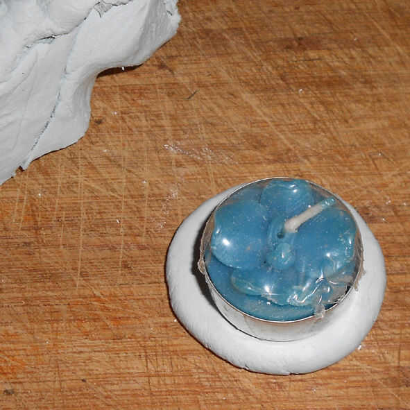 Corte de una pieza de barro y este molde en forma circular para la base de tu candelero.  La mía es de 5cm de diámetro y 5mm de grosor.  Esta parte será la parte más gruesa y proporcionará fuerza para las hojas de capas.