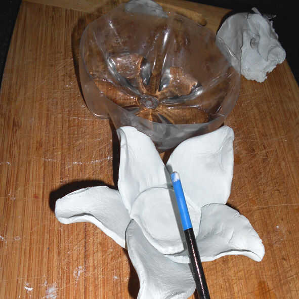 Un recipiente pequeño con agua y el extremo redondeado de un pincel puede utilizarse para presionar y alisar antes de colocar el Candelabro en un lugar soleado para secar durante el día.