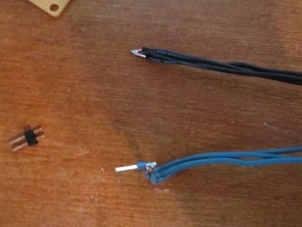 Soldadura todos los ánodos de un grupo junto y todos los cátodos de todos los grupos juntos, así que tienes 3 grupos diferentes con un cátodo común. Soldar pernos de cabecera al final de estos grupos para que fácilmente podría enchufarlo en un protoboard.
