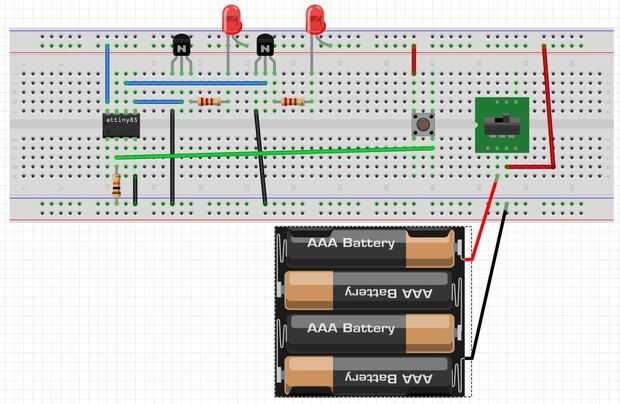 Probar tu circuito en el tablero de pan antes de construir el circuito y ajustar el código de