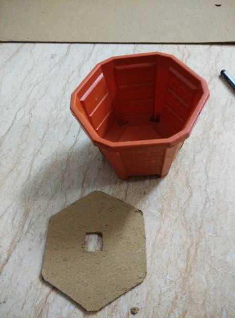 Conseguir un bote de plástico y uso de cartón como base como soporte para el árbol