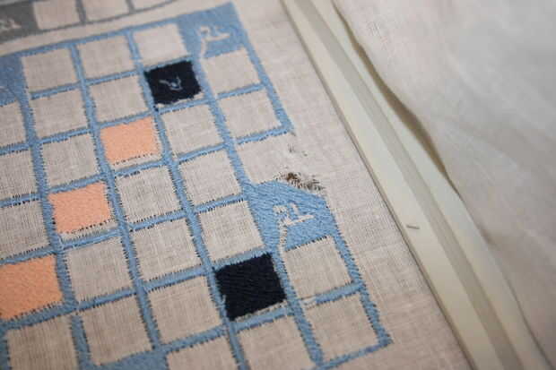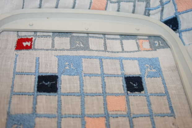 - Dibujar algunas líneas de referencia en la tela. Romper un lápiz, darte algo alineado el aro.