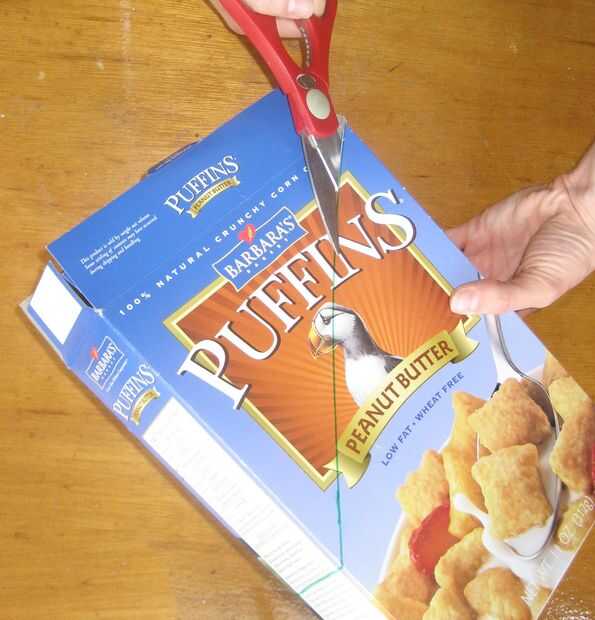 que "reutilizar" una caja de cereal en una carpeta de la escuela.Mi hija es bastante apasionada de tratar nuestro planeta de manera más responsable. Como una manera de volver a utilizar algún material de nuestra papelera de reciclaje, tenemos la