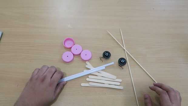 3) máquina taladro para perforar agujeros en las tapas de las botellas. (Puede hacerse con un cuchillo o tijeras)
