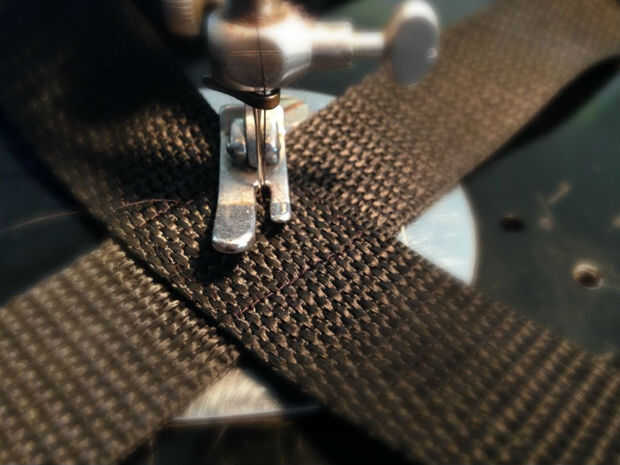 - Es el patrón usual para flejado de costura coser una "X" dentro de un cuadrado (ver foto 3, arriba) para una conexión buena, sólida.