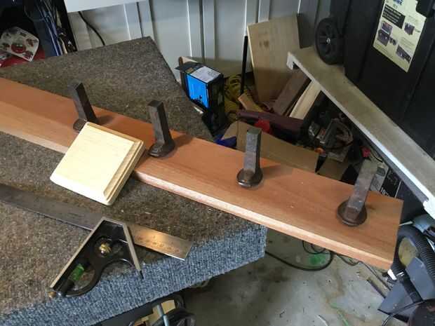 Para el rack de montaje en la pared, se nos ocurrió la idea de utilizar estas tomas nuez cuadrado que tenía. Hemos perforado sobre a medio camino a través de cada esquina con un pedacito de forstner 1/4 y el resto del camino con un pequeño pedacito de madera. Cuando montado, apretar las clavijas en los agujeros y tendrás un montaje real sólido que puede contener algo de peso.