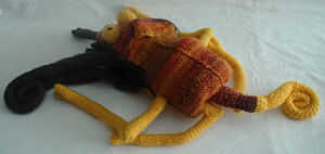 Cuidadosamente doble hacia atrás la cabeza, llevando la cola hacia el exterior. Meta en las piernas que van hacia atrás en el cuerpo como es resultó derecha.