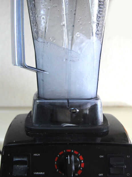 Coloque agua y alginato en una licuadora y mezcla a velocidad media durante un minuto para que el alginato se haya disuelto completamente. Vierta la mezcla en un plato que es cerca de 4 pulgadas ideal sólo lo suficientemente grandes y profundas por lo que el líquido es cerca de 1 pulgada desde el borde superior. Coloque en el refrigerador para descansar.