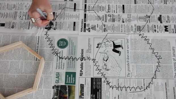 Utilizando el rastro del uno mismo, solo alrededor del exterior del hexágono. Enlazar tantos hexágonos como usted tiene gusto.