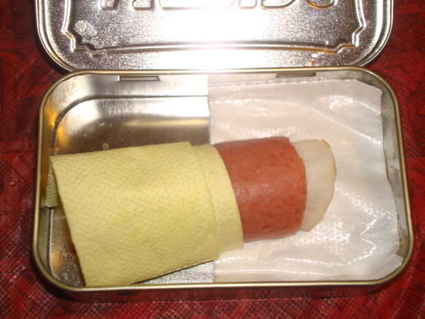 • Espolvorear un poco colorante rojo alrededor del dedo para parezca realista.