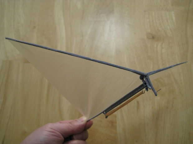 Doblar la cola hacia arriba ligeramente para un vuelo estable.