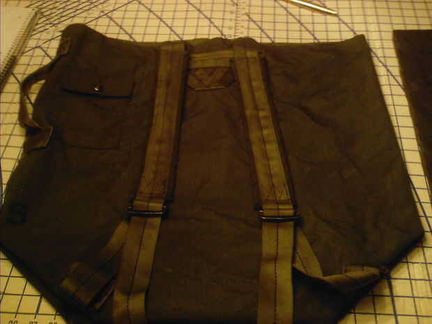 Decir cuando estaba visitando la tienda, encontré un viejo bolso de ropa del ejército, el monótono verde oliva con unos agujeros. Era solamente 2 bucks así aunque nunca la usé, que sería gran parte de una pérdida. Problema 2: Joder demasiado para llevar en cualquier lugar. Así que pensé que convertiría en una mochila utilizable.