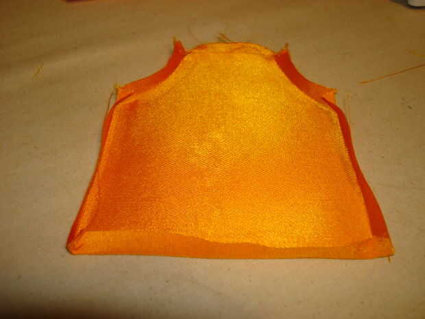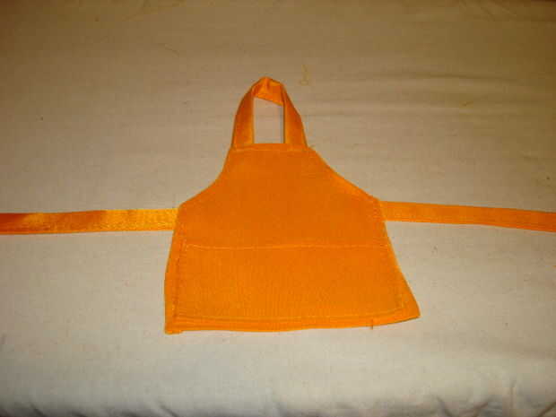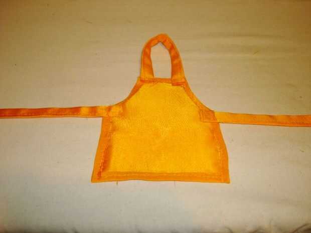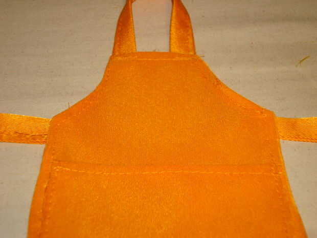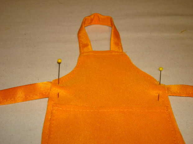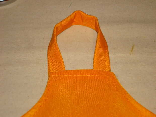 Pegar o coser el lazo del cuello y los lazos del delantal.