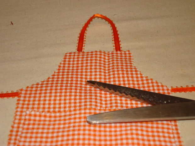 Añadir un bolsillo si lo desea, terminar los bordes cosiendo o encolar los bordes crudos bajo y coloque en el delantal.