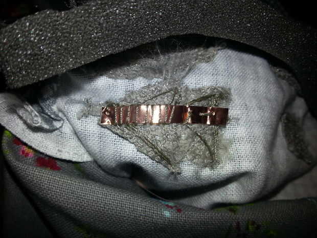 Para crear los botones tienes que coser o pegar en algún tipo de material conductor en la plataforma. Debe coser material conductor en dos puntos en el delantal. Estos puntos deben ser capaces de tocarse cuando se pulsa el botón.