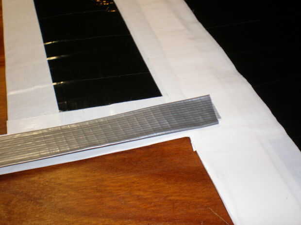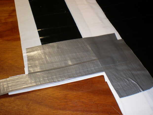 Más bien de intentar plegar toda la pieza a la vez, lo hice en secciones de 3 a 4 pulgadas, cinta adhesiva les hasta el último cuando fui a lo largo de.  Me seguí haciendo la cinta pegada a sí mismo de maneras imprevistas e irreparables cuando intenté utilizar piezas más largas.