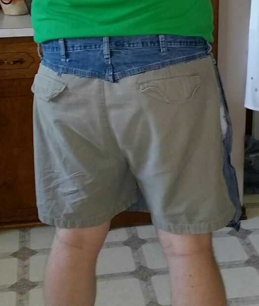 Comencé ir a troceado en una Daisy Dukes tanga suspensorio para el valor comedic del esquileo. Pero luego inspration en la forma y lo que iba a ser una broma se convirtió en un delantal para los sujetadores en el taller.