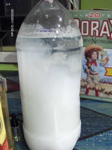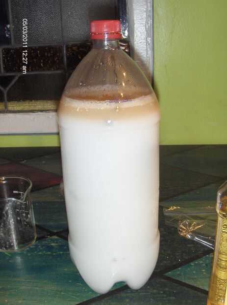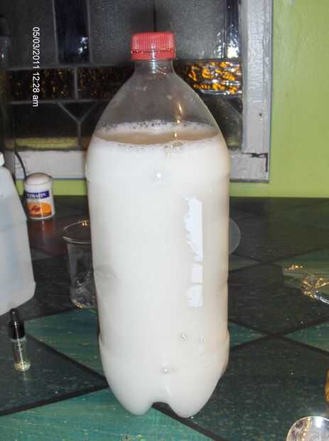 2. Después de una semana, vierta el alcohol de la bolsa de la botella de pop limpio y vacío de 2 litros. Añadir el resto de los ingredientes. Tápalo y darle una sacudida. Se verá de color blanco lechoso. Llenar su botella de spray y haz limpieza. Funciona muy bien en el baño y la cocina, incluyendo al horno en moho de suciedad y ducha microondas.