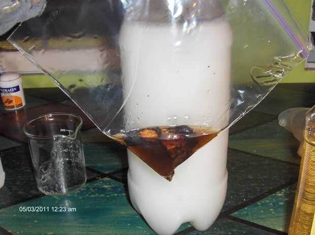 • 1 bolsa de zip-loc, 1 botella de pop de 2 litros vacía y una botella de spray limpia.