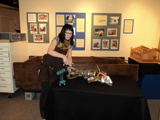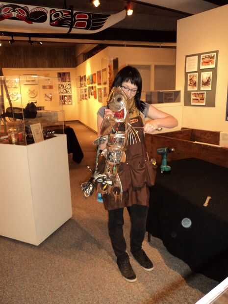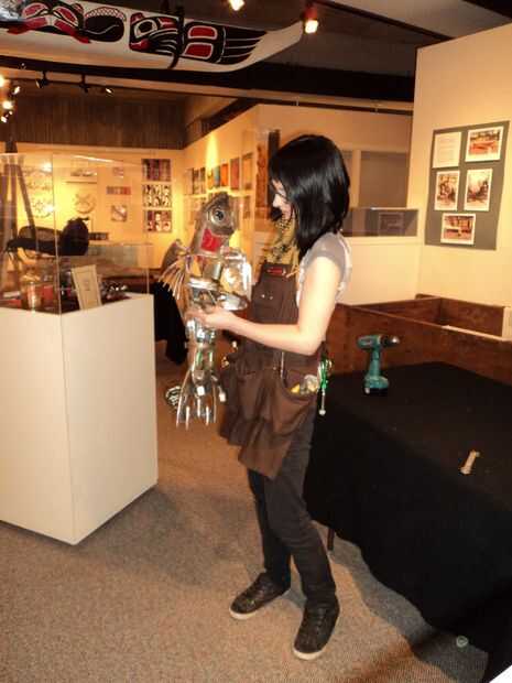 Ver Embajada fijar el robo de peces para el Museo de Kitimat!  Gracias a Dios ella está vestida con el delantal de HOLDING, ¡ UF!