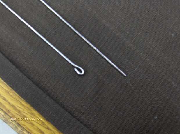 - Hablando de su barra de alambre, corte un pedazo de 52" de largo. En cualquiera de los extremos doblar la punta en un bucle ajustado. Esto evitará que el alambrón de corte/asomando a través del material una vez que esté montada. Este hilo a través de la bolsa y prepárate doblar!