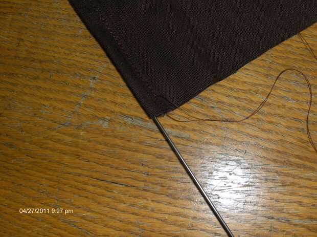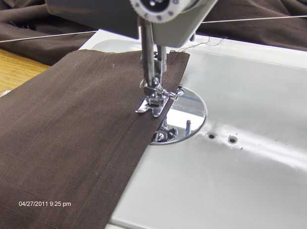 - Cose ambos bordes laterales a lo largo del borde. Esto dejará e un ½" bolsillo en la parte superior; Esto es donde el alambrón se deben pasar a través.