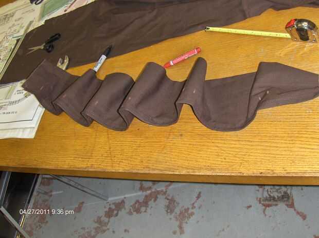 - Usted necesita una sola pieza de material 12 pulgadas 52 pulgadas. Corte este afuera y mira las fotos para el diseño de las dimensiones.