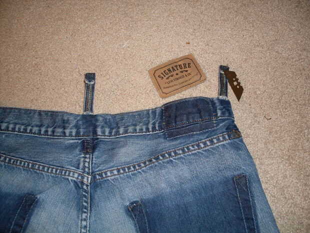 2. utilizando una hoja de afeitar o un destripador de la costura buena, separar los bolsillos y etiqueta. Suelte las presillas en la parte inferior solamente.