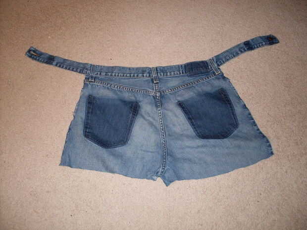 Corte los lados de los jeans a la cintura, dejando la costura a la parte delantera.