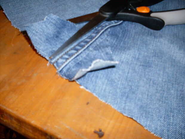 Corte material lejos de la costura media, luego colóquela en la parte delantera del delantal.