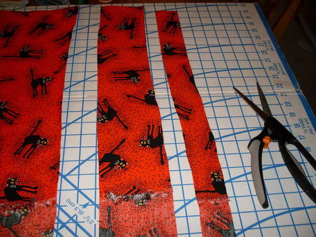 Cortar 3 tiras de 4 pulgadas de ancho y unos 3 pies de longitud cada uno.