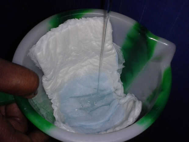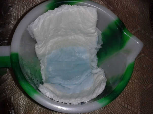 Vierta agua a la taza y ver en un segundo pañal lameculos agua completamente. Ver la última imagen. Pero no llene la parte superior, sólo un pañal su chupa solamente hasta su capacidad.