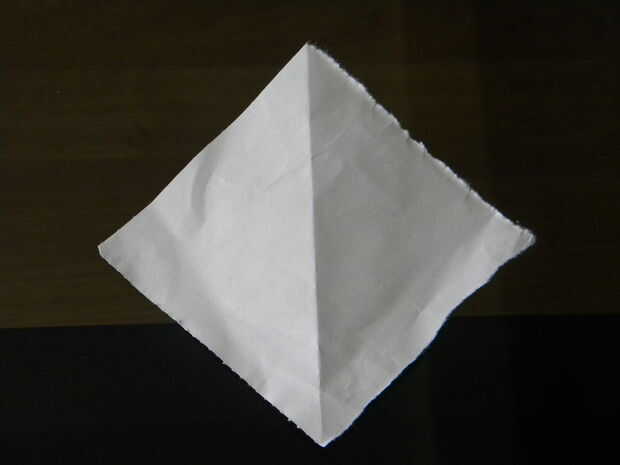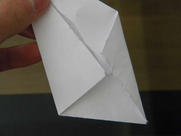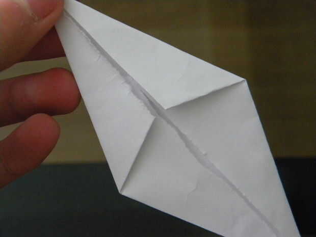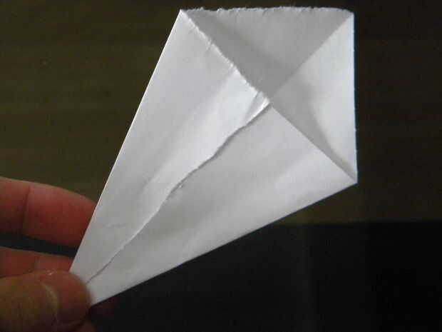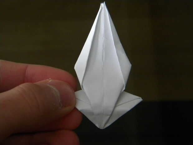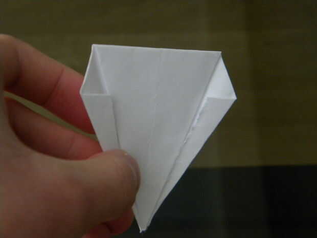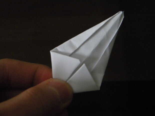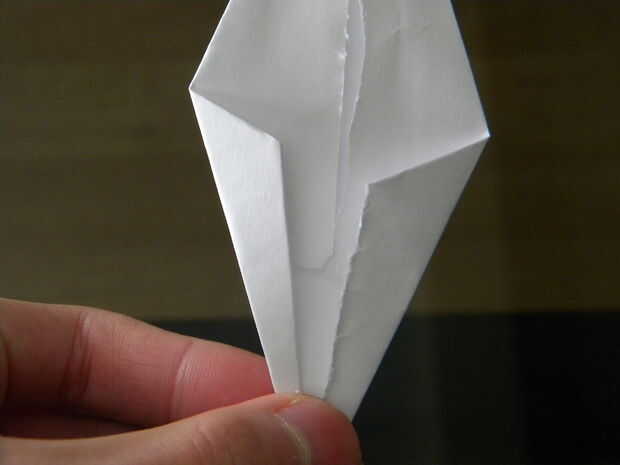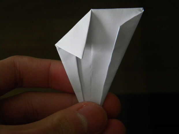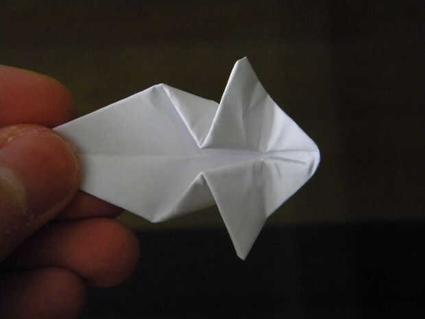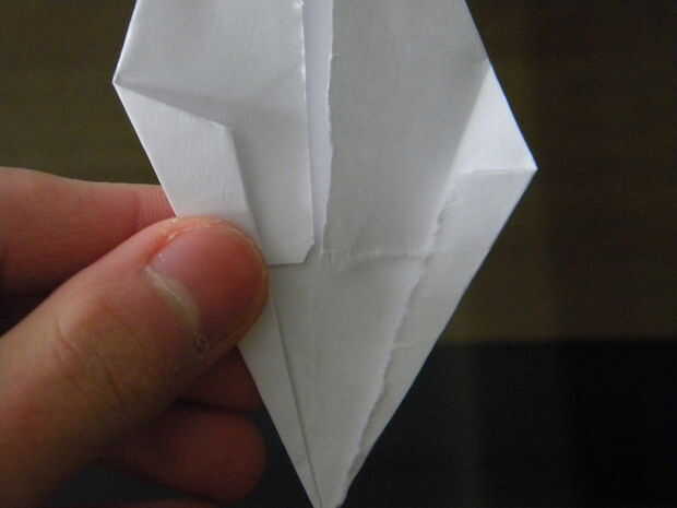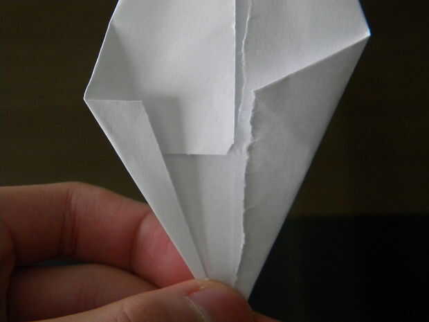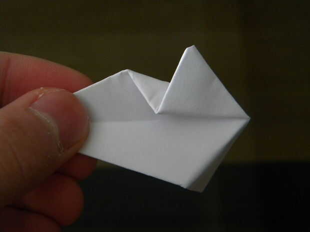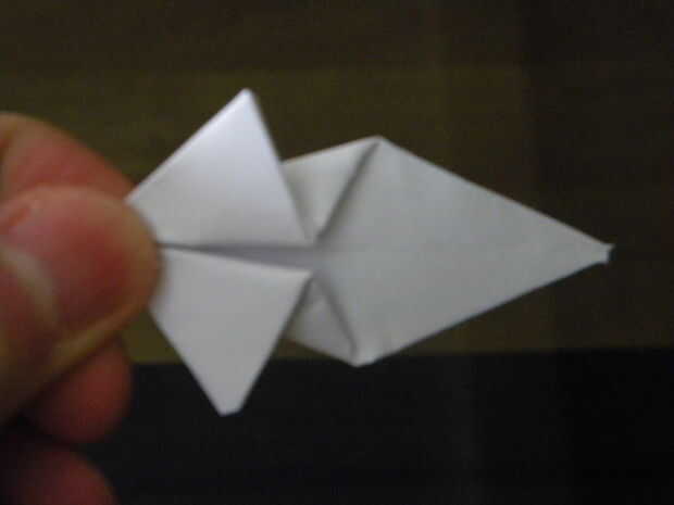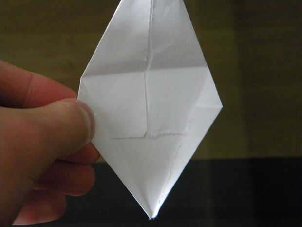 * Pic. 10-12: tomando la parte superior, doblar el diamante en el medio, metiendo la mitad debajo de las aletas laterales.