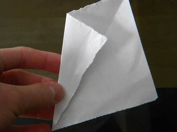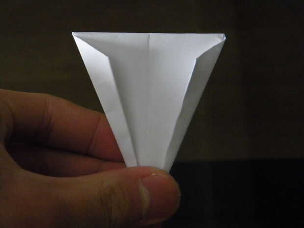 * Pic. 13-16: sostener el papel con la punta de la parte inferior hacia usted. Dobla las esquinas superiores por el centro, luego voltea el papel. De ese lado, doblar las esquinas en el centro.