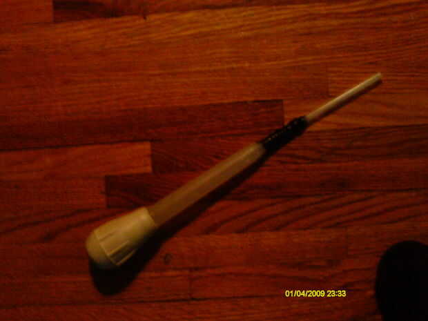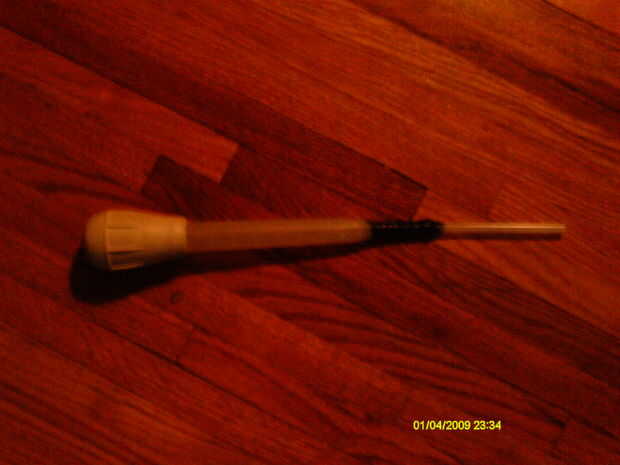 un juguete decorativo basada en el movimiento de deslizamiento de palo. El copo de nieve de madera se une por un resorte a una manga de madera que en una barra de metal. Deslice el copo de nieve en la parte superior de la varilla, y con un toque de