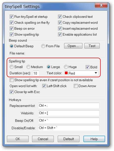Controles de ortografía on-the-fly (alertas si está mal escrita la última palabra mecanografiada)