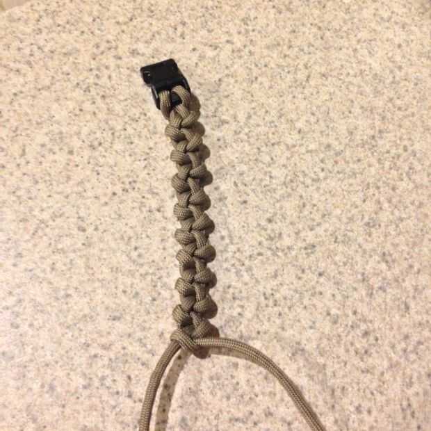 Aprender cómo hacer un brazalete de Paracord de Boa. Tendrá unos 14 pies de paracord y una hebilla de paracord. Esta trenza de Paracord es más fácil con un jig de paracord, pero se puede hacer sin uno. Se trata de un brazalete de paracord amplia.Paso