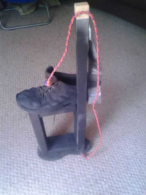 Todo lo que necesitas saber está en las fotos pero uh, llevas 2 2 x 4 de alto sin embargo que desee (estos me hacen aproximadamente 1 1/2 pie de taller) y añade ayudas horizontales, atornille un zapato en la parte superior y añade una barra de soporte para atar a la pierna para no romper el tobillo.