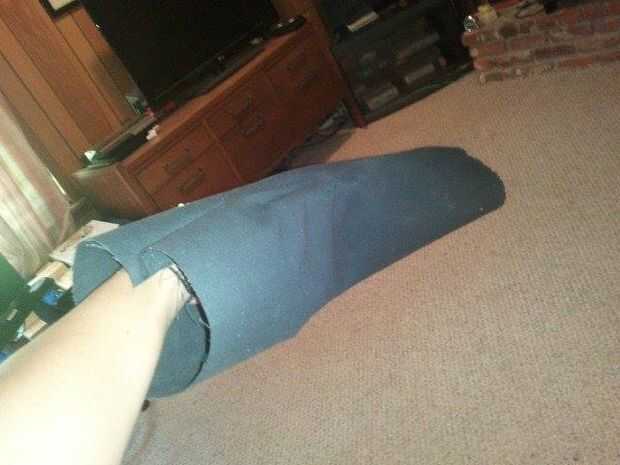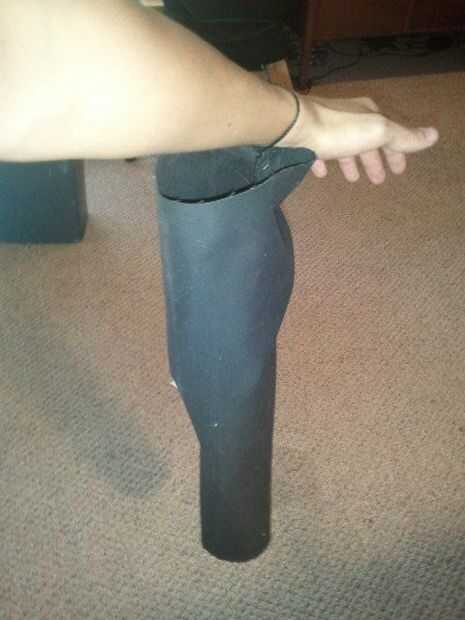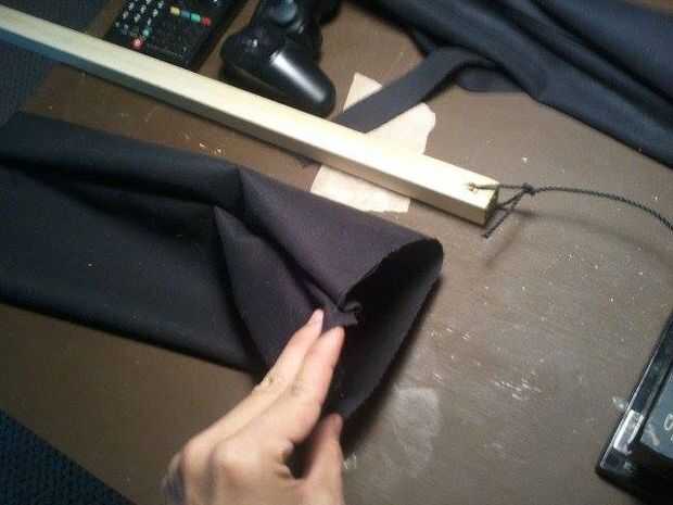 Un palo y atarla a su mano y agregar un tubo de tela, pegan el palo hacia abajo en el tubo y grapa, ahora como usted puede ver en las fotos cuando te dejaron ir del brazo "eres libre de utilizar sus manos" algo visto en mayoría slendy trajes.