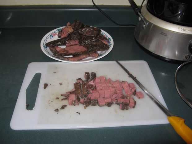 El resto de la carne asada que muelo para un plato diferente que le mostrará más adelante.