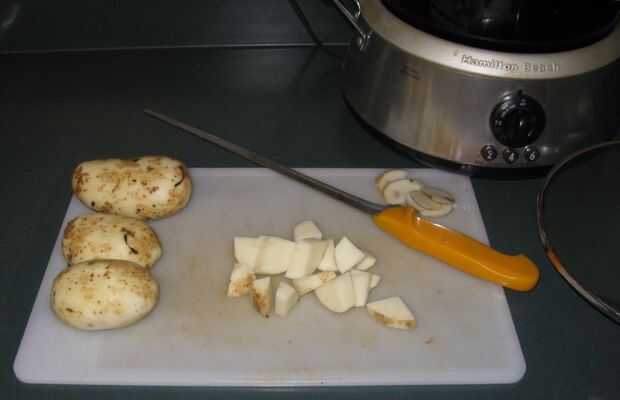 Hacer lo mismo a cuatro patatas medianas y dados encima de un buen tamaño inion.
