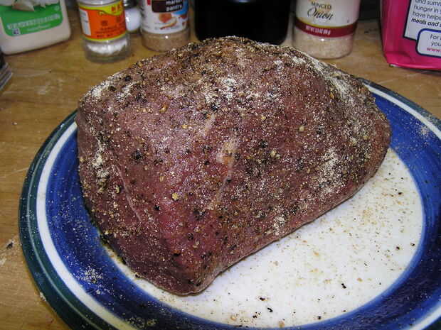 ** Tuve una idea. Mezcla partes iguales sal, pimienta, cebolla y ajo. Extender en una bandeja y rodillo la carne en ella.