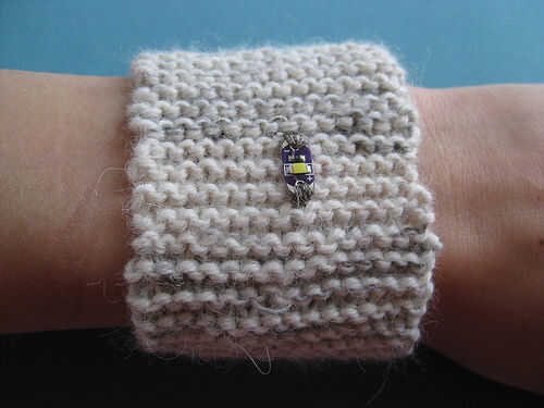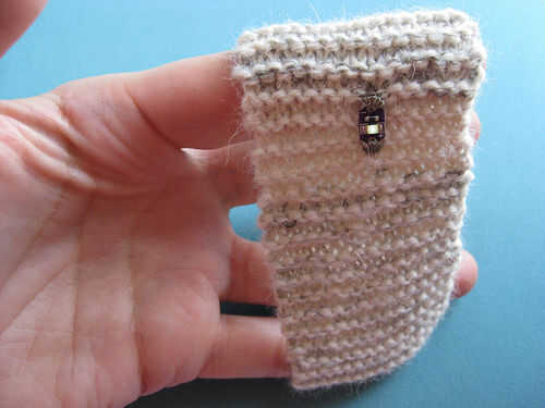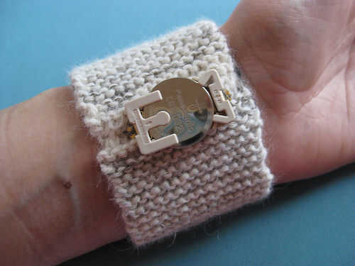 El hilo conductor que utiliza para tejer el sensor de estiramiento en esta pulsera tiene una alta resistencia, que disminuye cuando están estiradas. Esto significa que cuanto más se estira la pulsera, cuanto menor sea la resistencia, más tensión puede fluir. La tensión más que flujos significa el LED puede iluminar más brillante.