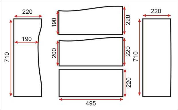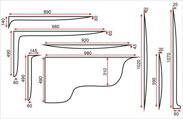 En primer lugar es mucho de jugar con un rompecabezas. Usted necesitará cortar formas curvas - sólo tienes que seguir los cuadros, el primero le muestra el escritorio y todos los elementos por encima de él, el otro - los estantes de abajo.