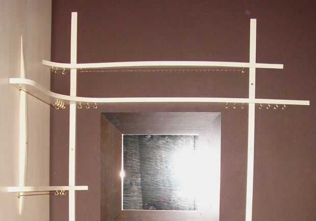 Además, perforé seis agujeros en el más bajo tablero horizontal (uno muy delgado en el espejo) para cabello-palos.